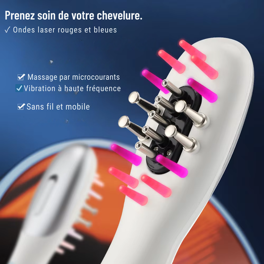 Brosse massage cuir chevelu EMS avec LED – Peigne masseur électrique pour la tête