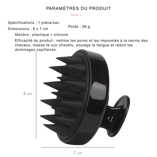 Masseur cheveux en silicone – Brosse de massage du cuir chevelu pour lavage, shampooing et soin capillaire sous la douche