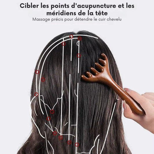 Brosse pour masser cuir chevelu en bois – Peigne de massage méridien antistatique à six griffes