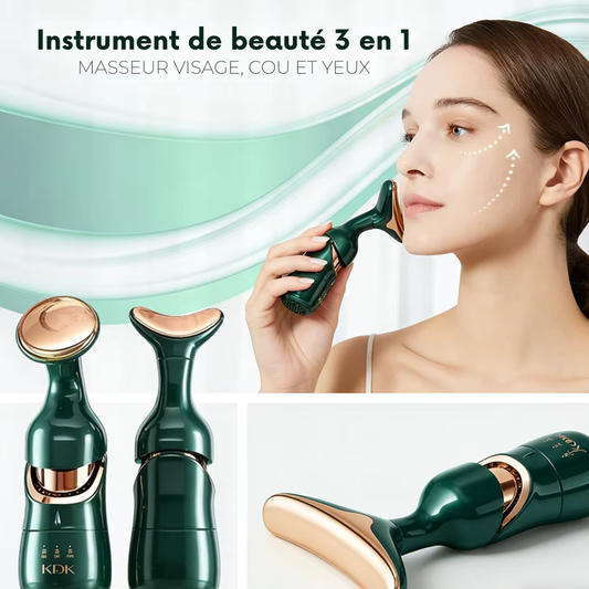 Appareil pour massage du visage 3-en-1 – EMS lifting, raffermissement, anti-rides, massage cou, yeux et visage
