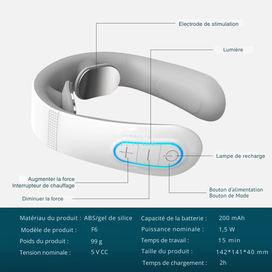 Appareil massage cervicales – Masseur de cou électrique EMS intelligent pour détente, soulagement douleur et massage musculaire TENS
