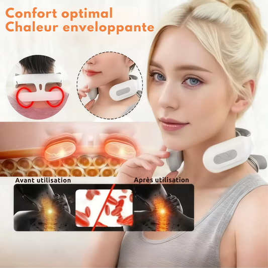 Appareil massage cervicales – Masseur de cou électrique EMS intelligent pour détente, soulagement douleur et massage musculaire TENS