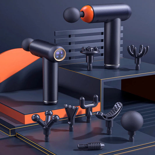 Pistolet masseur portable – Avec 4 têtes interchangeables et LED pour massage complet du corps