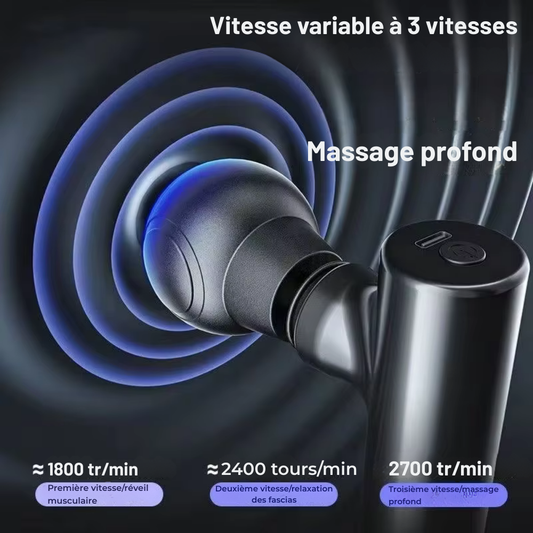 Pistolet de massage portable – Mini appareil de massage des tissus profonds, léger et à vitesses réglables pour tout le corps