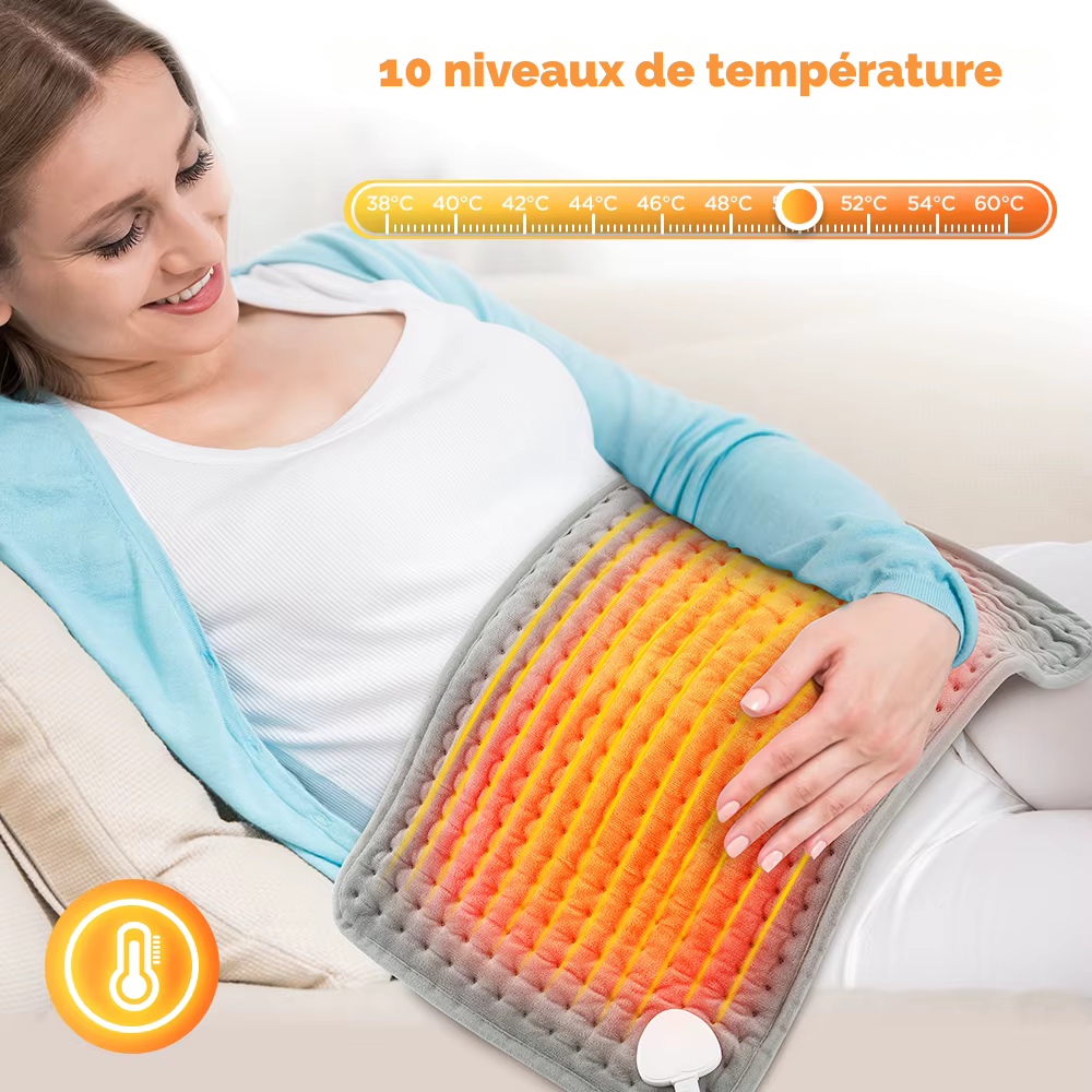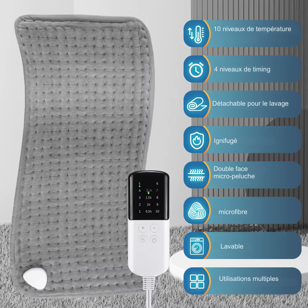 Coussin chauffant électrique – Massage corps complet, micro-velours, 10 températures