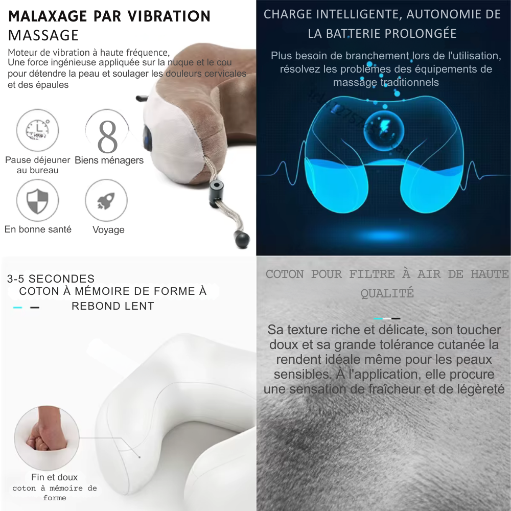 Le Coussin massant cervicales – Oreiller électrique en U offre un massage multifonction et un soutien ergonomique, parfait pour soulager les tensions musculaires et profiter d’une relaxation immédiate.