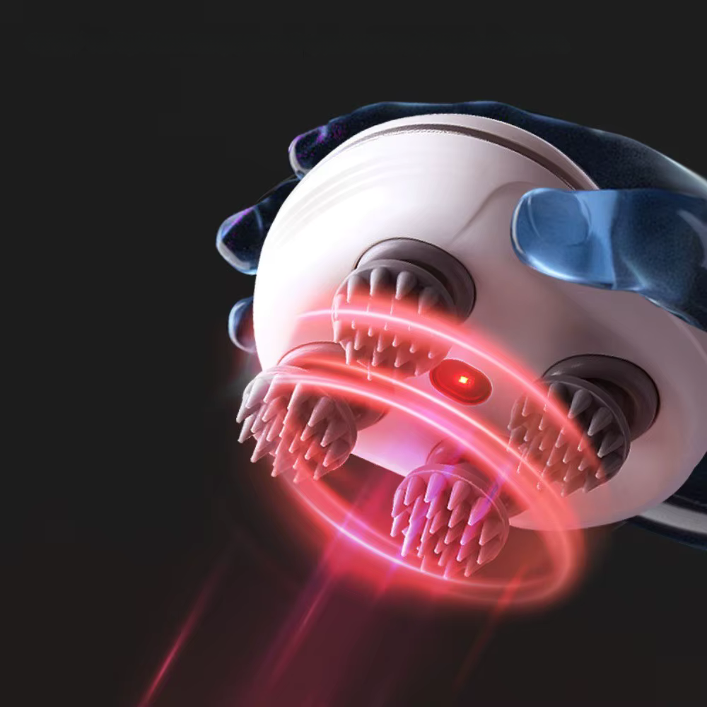 Le Masseur de tête électrique portable combine vibrations douces et pétrissage 360° pour stimuler le cuir chevelu et favoriser la circulation sanguine.