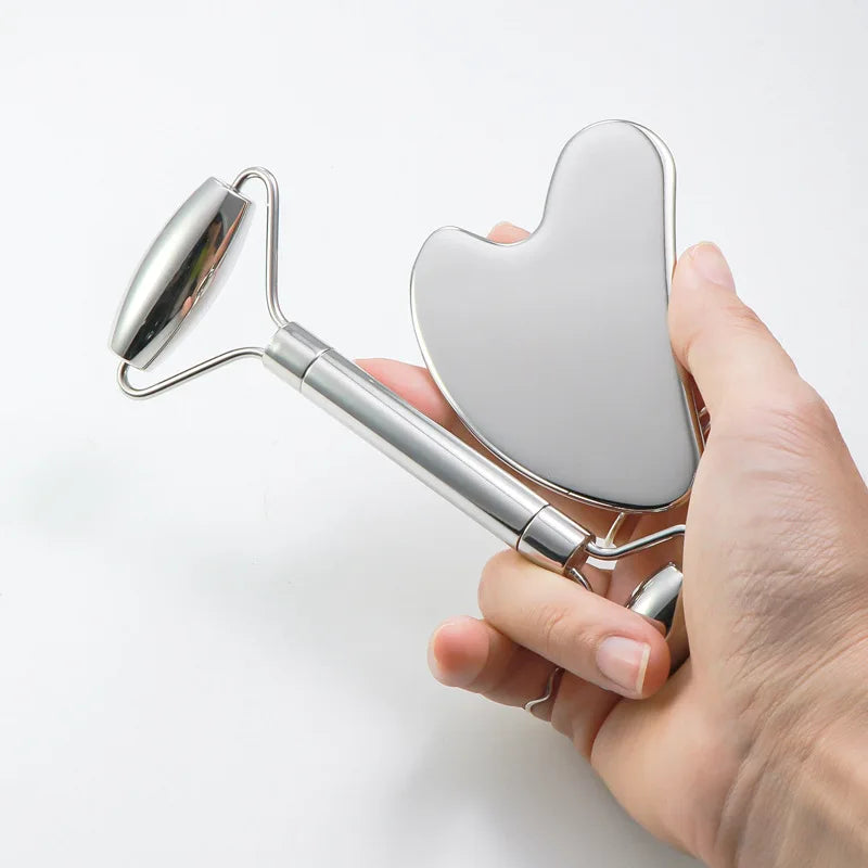 Rouleau Facial en Acier Inoxydable & Gua Sha – Traitement Visage, Corps, Détente et Pierre Massage Visage
